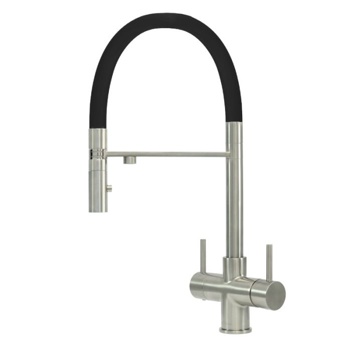 Aquila 2 Lever Mixer And Cold Filter Tap Brushed Steel/Black