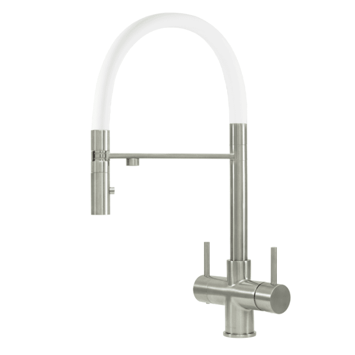 Aquila 2 Lever Mixer And Cold Filter Tap Brushed Steel/White