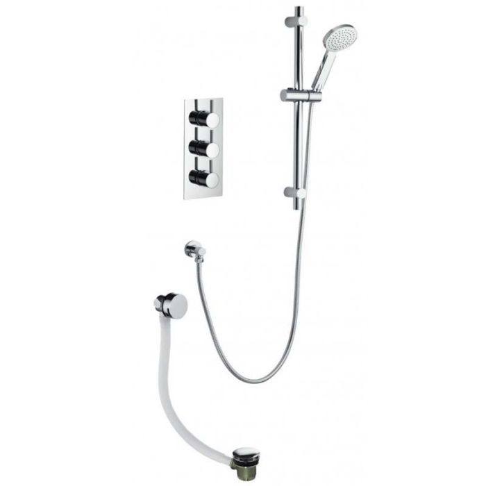 Arco 3 Knob Twin Outlet Concealed Thermostatic Valve with Adjustable Head and Bath Fill