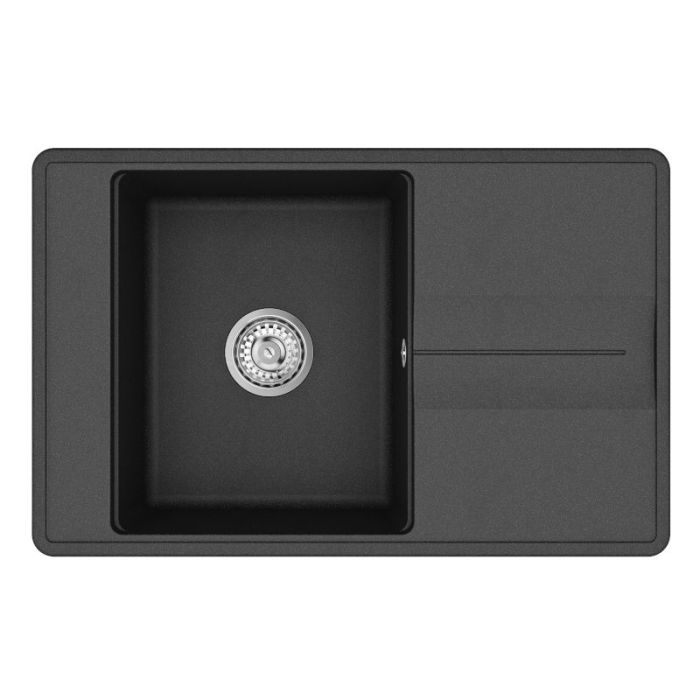 Clearwater Arina Smart Single Small Bowl Reversible Inset Quarex Granite Sink with Waste in Jet - ARID101JT