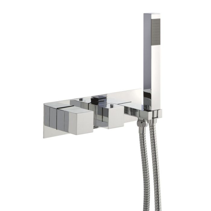 Just Taps Plus - Athena Twin Outlet Recessed Thermostatic Shower Valve Kit with Handset and Hose in Chrome (86868)
