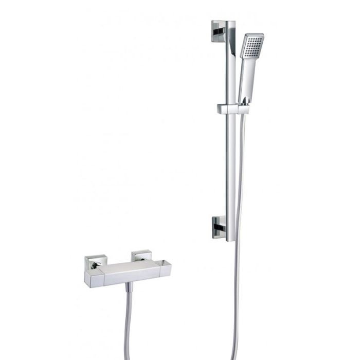 Imex Ceramics (Previously Pura Bathrooms) Bloque 2 Single Outlet Bar Valve with Bloque Slide Rail Kit, Dekka Single Function Adjustable Head and Smooth Hose