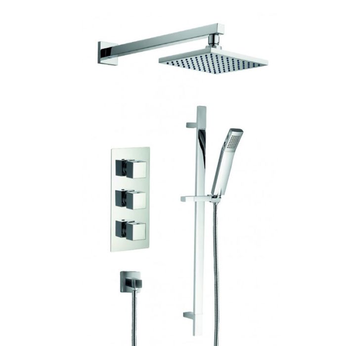 Bloque2 3 Knob Twin Outlet Concealed Thermostatic Valve with Adjustable and 200mm Fixed Heads.