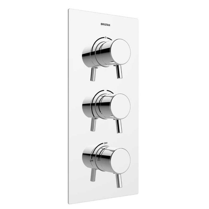 Bristan Prism Thermostatic Recessed Dual Control Three Handle Shower with Integral Stopcock and Two Outlet Diverter