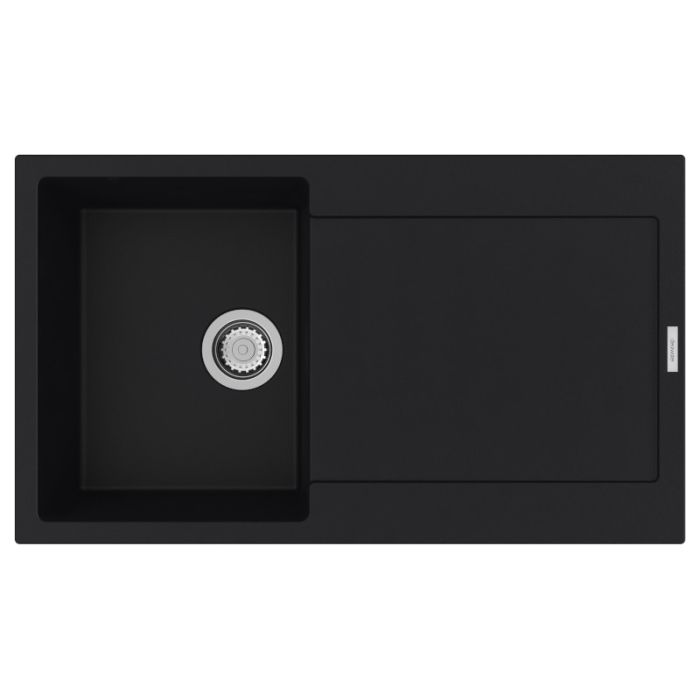 Clearwater Carina Single Small Bowl Reversible Inset Quarsil Granite Sink with Waste in Nero - CAR D100S NE