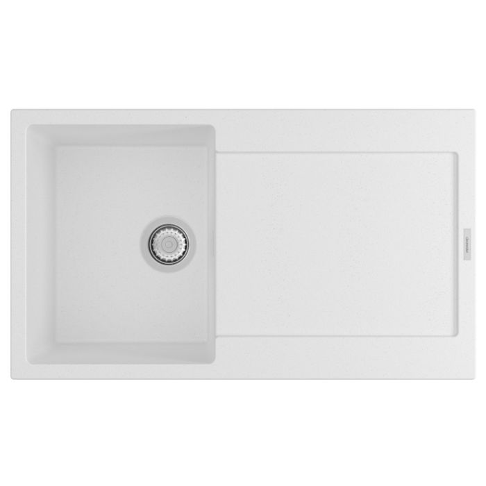 Clearwater Carina Single Small Bowl Reversible Inset Quarsil Granite Sink with Waste in Polar White - CAR D100S PO