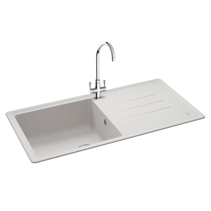 Carron Phoenix Debut 105 Granite 1 Bowl Reversible Inset Kitchen Sink in Polar White - 114.0288.187