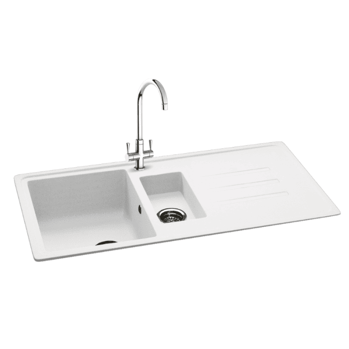Carron Phoenix Debut 150 Granite 1.5 Bowl Reversible Inset Kitchen Sink in Polar White - 114.0201.155
