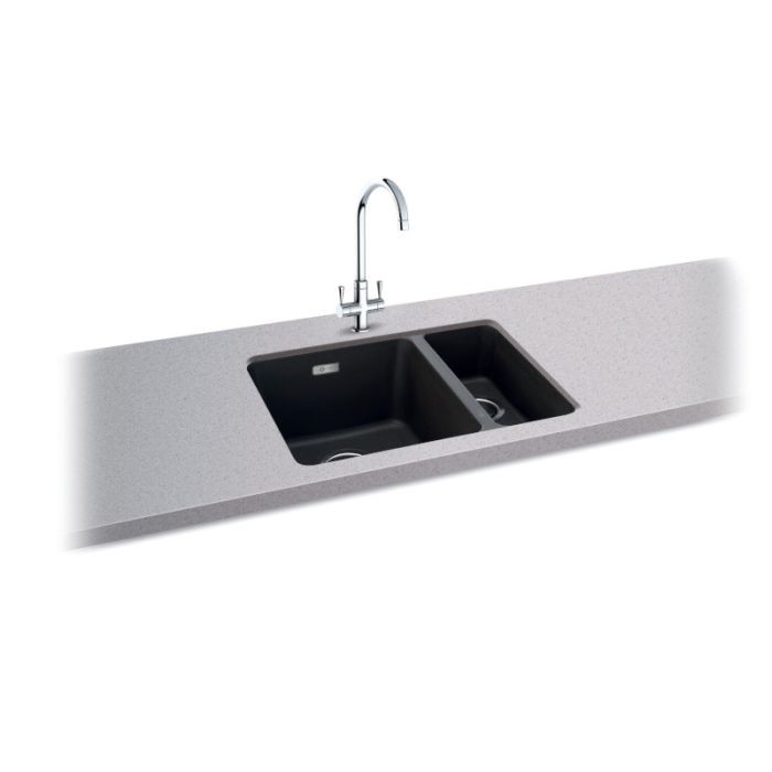 Carron Phoenix Haven 150 Granite 1.5 Bowl (Right Hand Small Bowl) Undermount Kitchen Sink in Matt Black - 125.0696.034