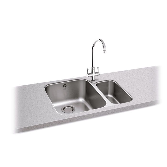 Carron Phoenix Ibis 150U Stainless Steel 1.5 Bowl Undermount Kitchen Sink (Left Hand Small Bowl) - 122.0284.072