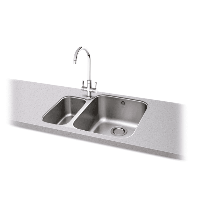 Carron Phoenix Ibis 150U Stainless Steel 1.5 Bowl Undermount Kitchen Sink (Right Hand Small Bowl) - 122.0284.074