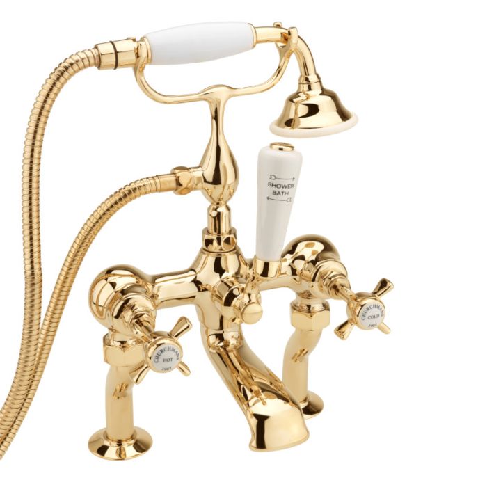 CHURCHMAN CRANKED BATH SHOWER MIXER KIT GOLD