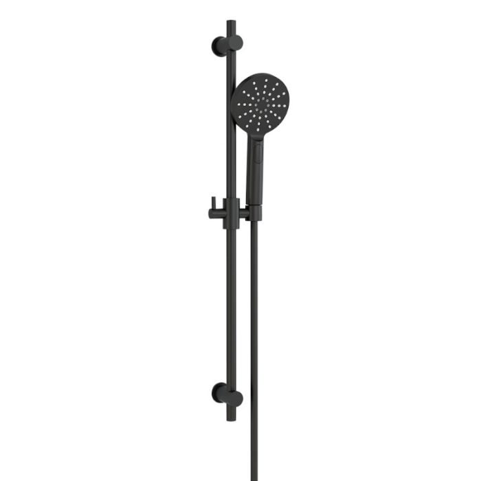 Imex Ceramics (Previously Pura Bathrooms) Contemporary Matt Black, Solid Brass Slide Rail Set with Smooth Hose and Multifunction Handset (KI435MB)