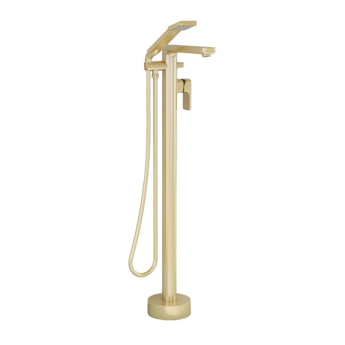 Imex Ceramics (Previously Pura Bathrooms) Flite Floor Mounted Bath Shower Mixer Kit with Handset & Hose in Brushed Brass (FLFSBSMBB)