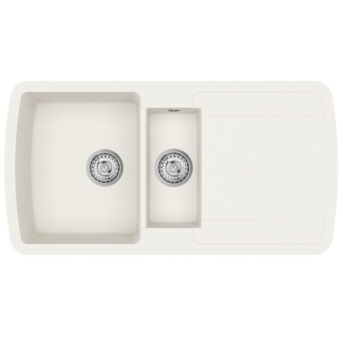 Clearwater Gemini 1.5 Bowl Inset Quarex Granite Sink with Waste and drainer in Blizzard - GEMD150SBL