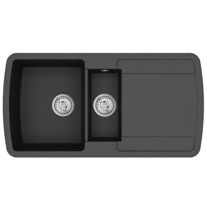 Clearwater Gemini 1.5 Bowl Inset Quarex Granite Sink with Waste and drainer in Jet - GEMD150SJT