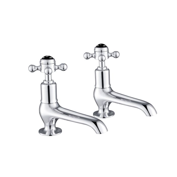 Just Taps Plus - Grosvenor Cross Long Nose Basin Taps in Chrome with Black Indices (GB76011)