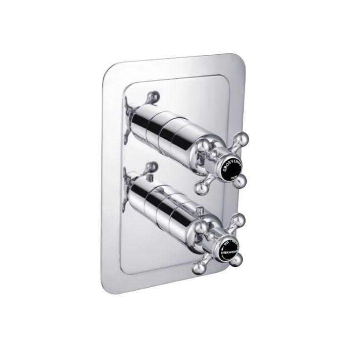 Grosvenor Black Cross 2 Way Thermostatic Shower Valve Chrome