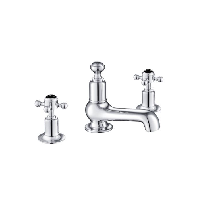 Grosvenor Black Cross 3-Hole Basin Mixer Chrome