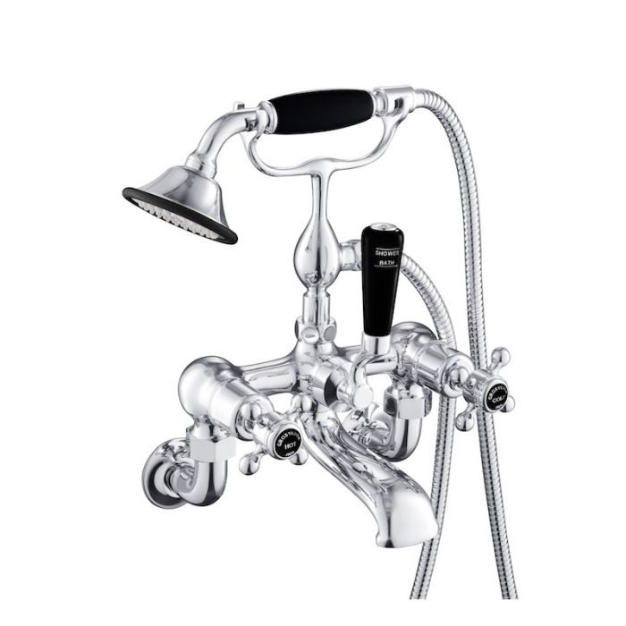 Grosvenor Black Cross Wall Bath Shower Mixer Chrome