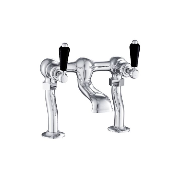 Just Taps Plus - Grosvenor Lever Deck Mounted Bath Filler in Chrome with Black Levers (GB85223)