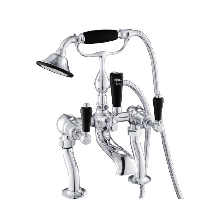 Grosvenor Black Lever Deck Bath Shower Mixer Chrome