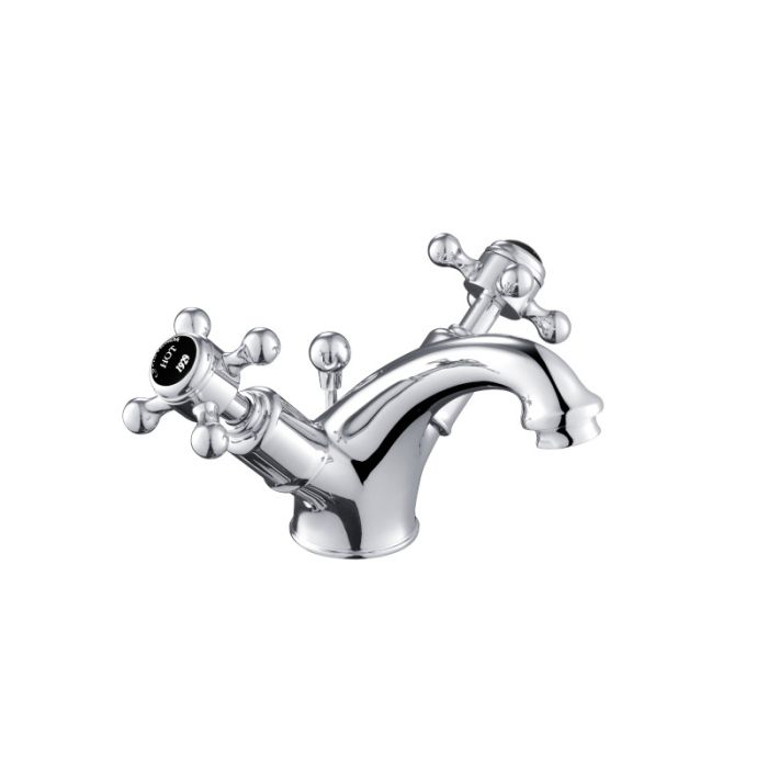 Just Taps Plus - Grosvenor Pinch Basin Mixer with Pop Up Waste in Chrome with Black Indices (GB98169)