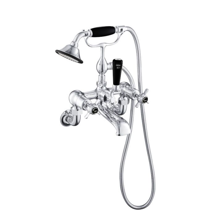 Grosvenor Black Pinch Wall Bath Shower Mixer Chrome