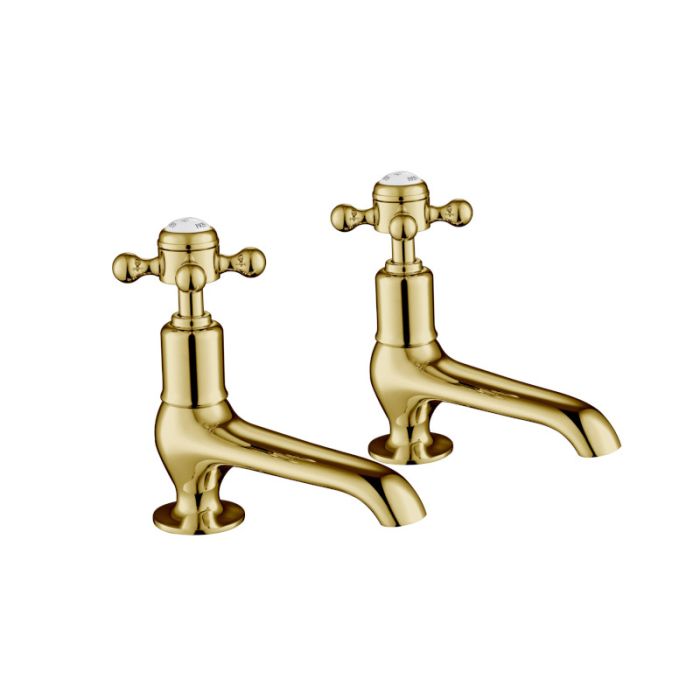 Just Taps Plus - Grosvenor Cross Long Nose Basin Taps in Polished Gold (76011G)