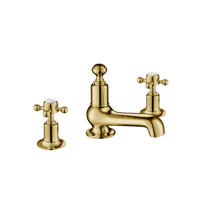 Grosvenor Cross 3-Hole Basin Mixer Gold