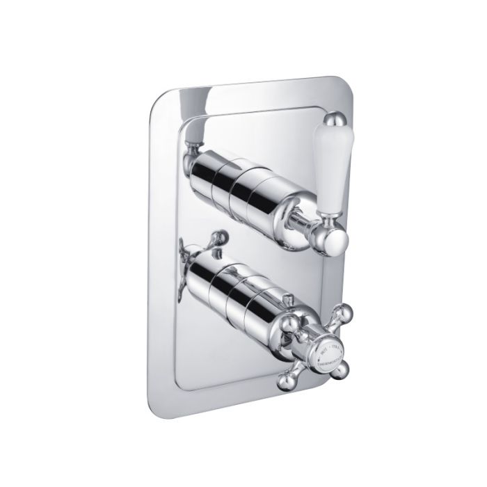 Just Taps Plus - Grosvenor Lever Two Outlet Thermostatic Shower Valve in Chrome with White Levers (85671)