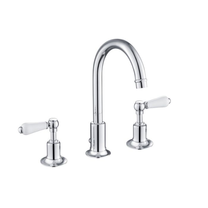 Just Taps Plus - Grosvenor Lever 3 Hole Deck Mounted Basin Mixer with Swivel Spout in Chrome with White Levers (85191)