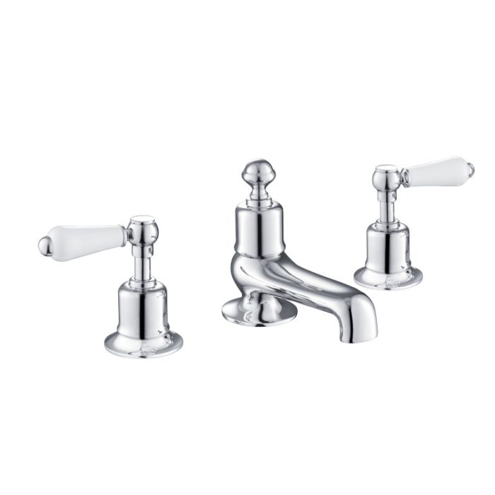 Just Taps Plus - Grosvenor Lever 3 Hole Deck Mounted Bath Filler in Chrome with White Levers (85095)