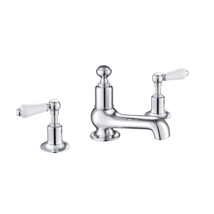 Just Taps Plus - Grosvenor Lever 3 Hole Deck Mounted Basin Mixer in Chrome with White Levers (85193)