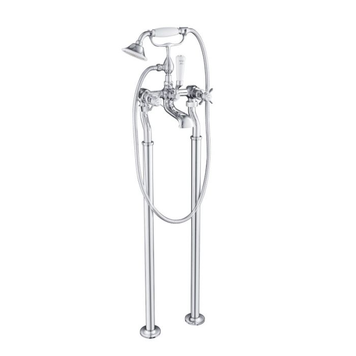 Just Taps Plus - Grosvenor Pinch Freestanding Bath Shower Mixer with Kit in Chrome with White Indices (98275FS)