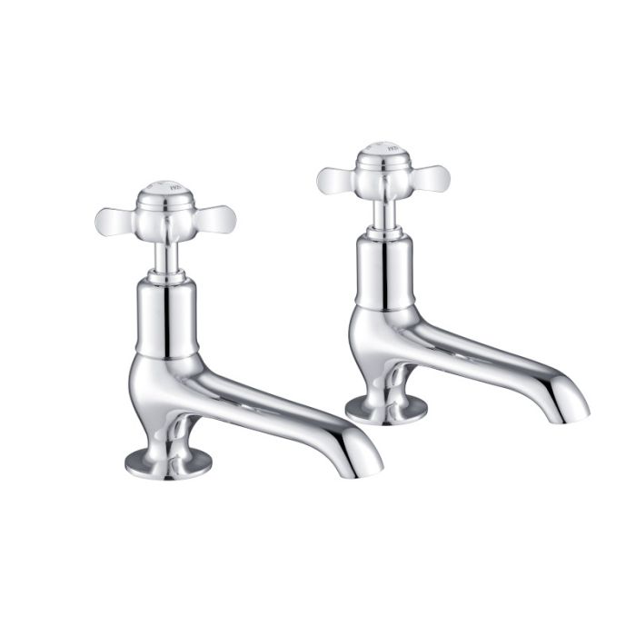 Just Taps Plus - Grosvenor Pinch Long Nose Basin Taps in Chrome with White Handles (98011)