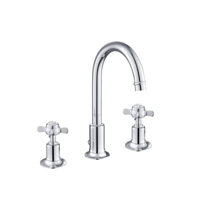 Just Taps Plus - Grosvenor Pinch 3 Hole Deck Mounted Basin Mixer with Swivel Spout in Chrome with White Handles (98191)