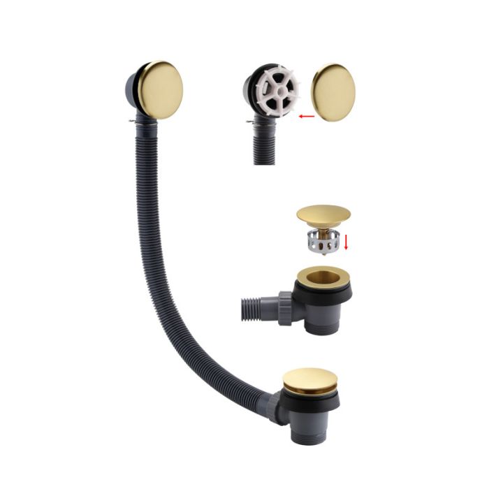 Brushed Brass Easy Clean Hair Catch Clicker Bath Waste and Overflow from Imex Ceramics (Previously Pura Bathrooms)