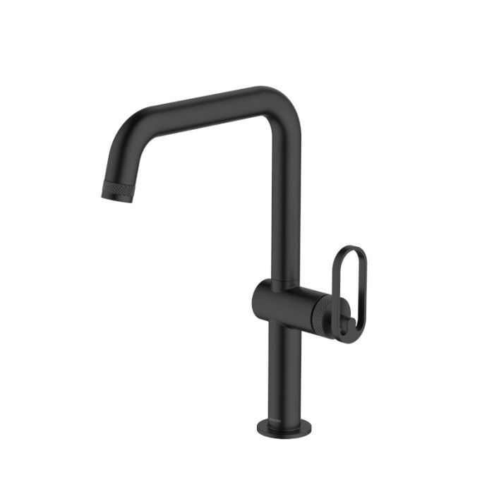 The Juno is the latest generation of taps which boasts a slimline modern design with high-set controls. This progressive tap announces its industrial aesthetics with a futuristic control handle and knurling on the valve cover.