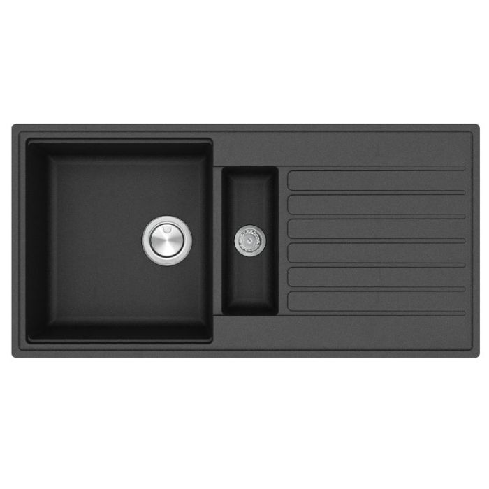 Clearwater Kameo Smart 1.5 Bowl Inset Quarex Granite Sink with Waste and drainer in Jet - KAMD150LJT