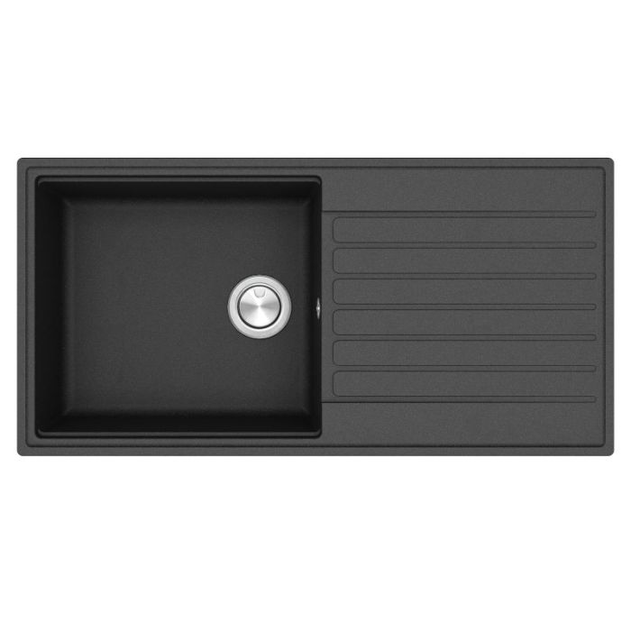 Clearwater Kameo Smart Single Bowl Inset Quarex Granite Sink with Waste and drainer in Jet - KAMD100LJT