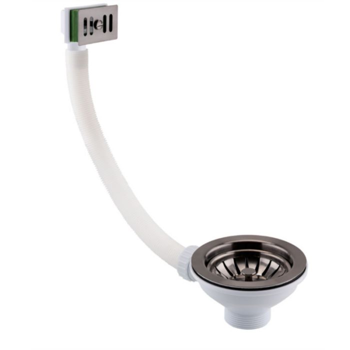 JTP 90mm Kitchen Sink Basket Strainer Waste with Square Overflow in Brushed Black (BSQ202BBL)