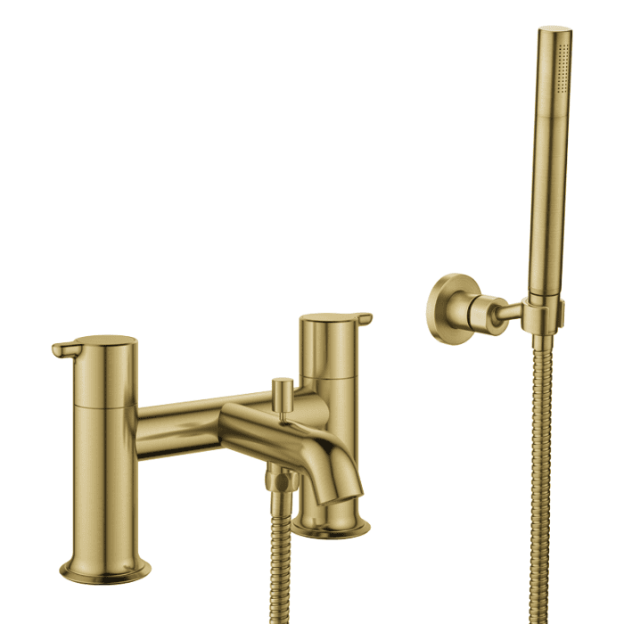 Flova Moonlight Deck Mounted Bath Shower Mixer with Kit in Brushed Brass (BRB-MLBSM)