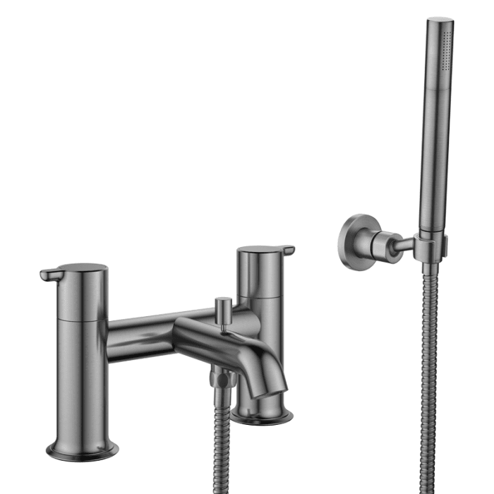 Flova Moonlight Deck Mounted Bath Shower Mixer with Kit in Gun Metal (GM-MLBSM)