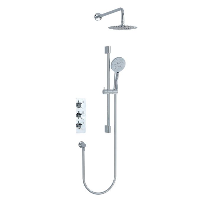 Imex Ceramics (Previously Pura Bathrooms) Ravine 3 Handle, Dual Diverter Concealed Thermostatic Valve with Adjustable & 200mm Fixed Heads in Chrome (RAVCVPK006CP)