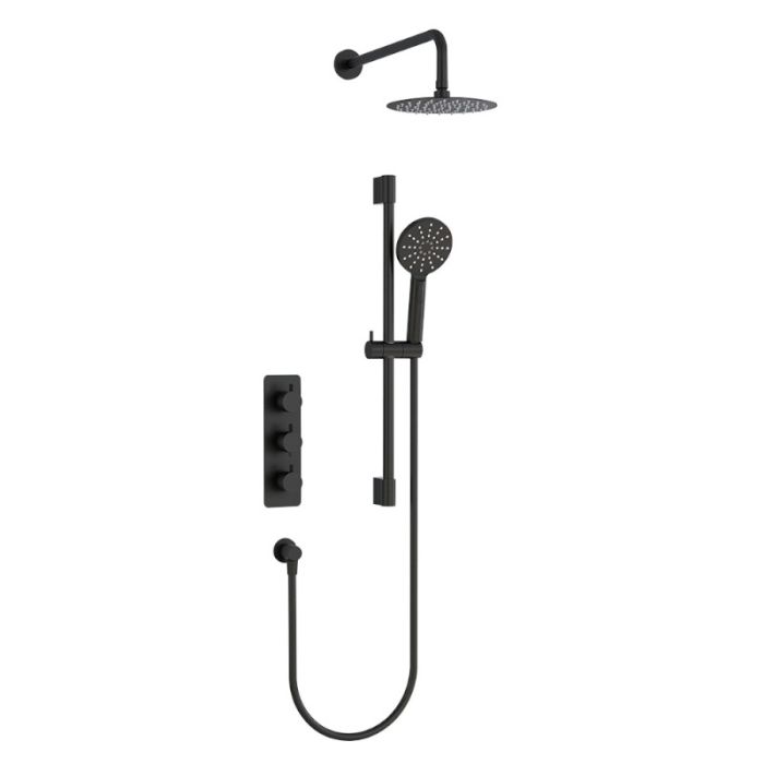 Imex Ceramics (Previously Pura Bathrooms) Ravine 3 Handle, Dual Diverter Concealed Thermostatic Valve with Adjustable & 200mm Fixed Heads in Matt Black (RAVCVPK006MB)