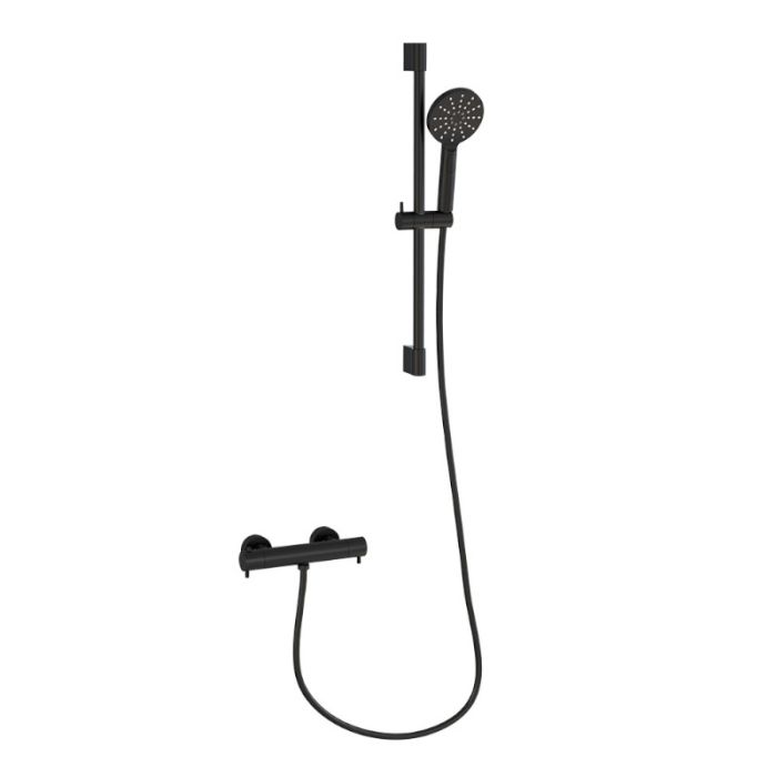 Imex Ceramics (Previously Pura Bathrooms) Ravine Thermostatic Shower Set with Slide Rail, Hose & Multifunction Handset in Matt Black (RAVINE1MB)
