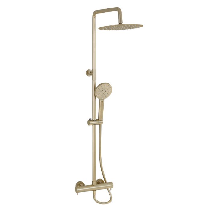 Imex Ceramics (Previously Pura Bathrooms) Ravine Thermostatic Shower Set in Chrome with Fixed Overhead Shower & Multifunction Adjustable Handset in Brushed Brass (RAVRRPDFBB)