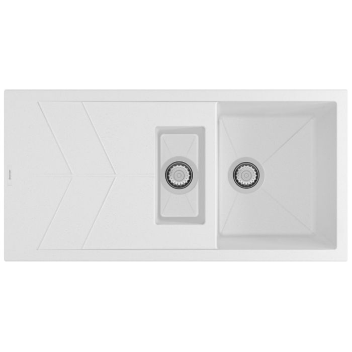 Clearwater Rio 1.5 Bowl Reversible Inset Quarsil Granite Sink with Waste in Polar White - RIO D150 PO