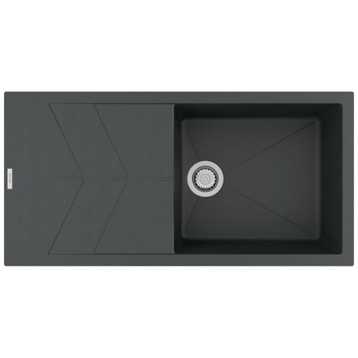 Clearwater Rio Single Large Bowl Reversible Inset Quarsil Granite Sink with Waste in Basalt - RIO D100L BA